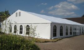 De tent bestaat uit elementen van 5 meter en kan dus vanaf 10 meter telkens met 5 meter verlengd worden tot 30 meter lang.